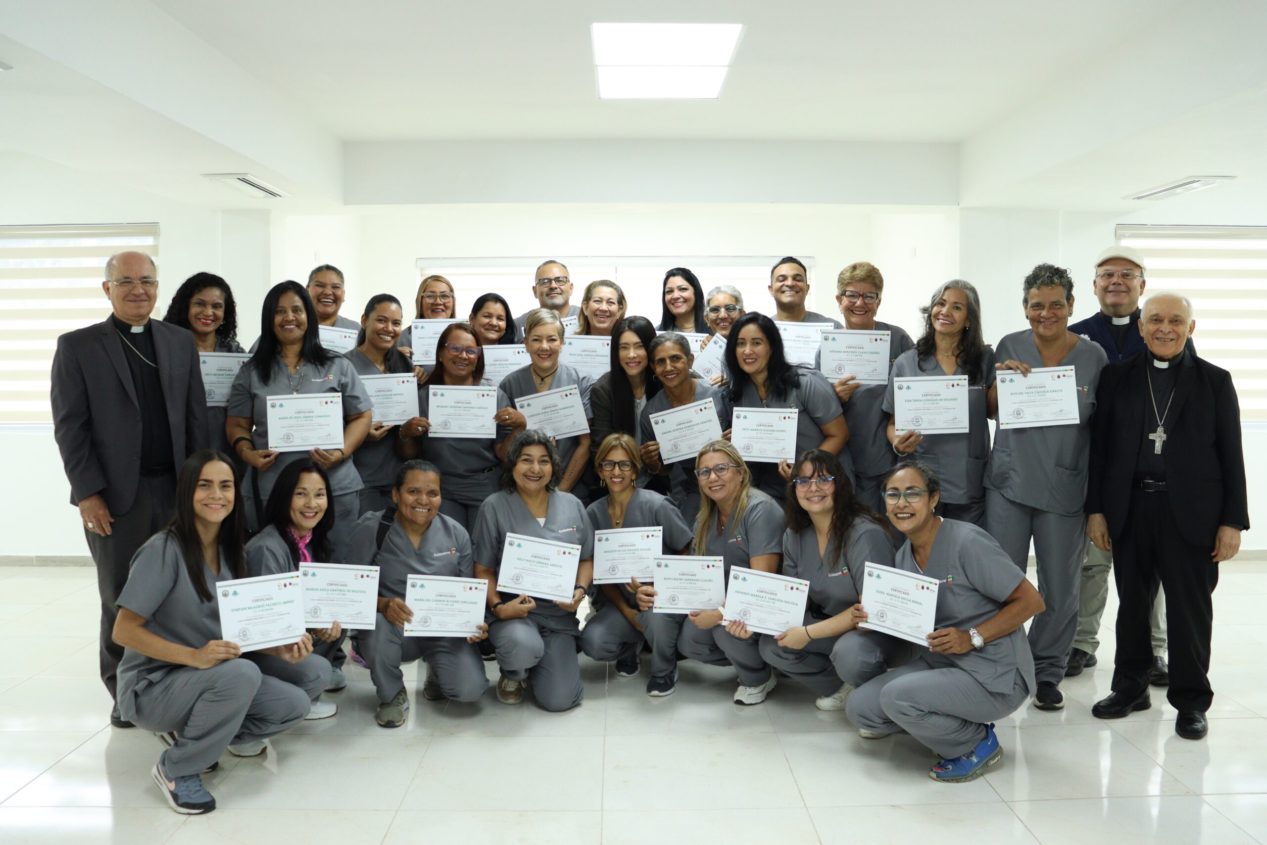Egresados de la última cohorte del programa Cuidadores 360 participaron en una charla de prevención de riesgos y accidentes domésticos para personas mayores dictado por Maria Gabriela Pereira, enfermera y docente universitaria. Los egresados hablaron de sus experiencias y recorrieron las áreas de la casa sacerdotal en San Jose del Avila, ubicada en Caracas.